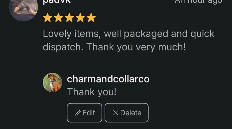 "Absolutely love the vibrant colours and unique designs! My dog gets compliments everywhere we go. Excellent quality and fast delivery!"